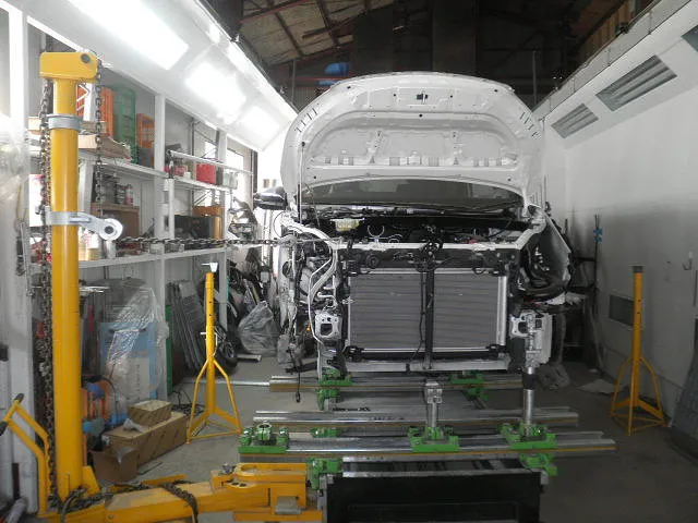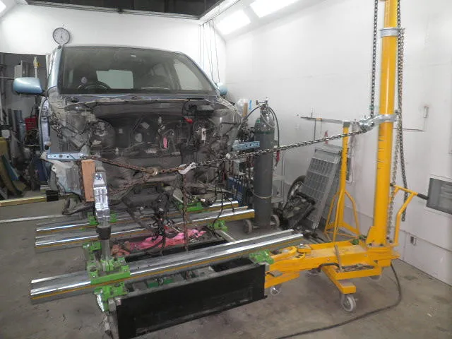 事故によって破損した車は、フレームがゆがんでしまい、人力だけで直すのは難しいです。