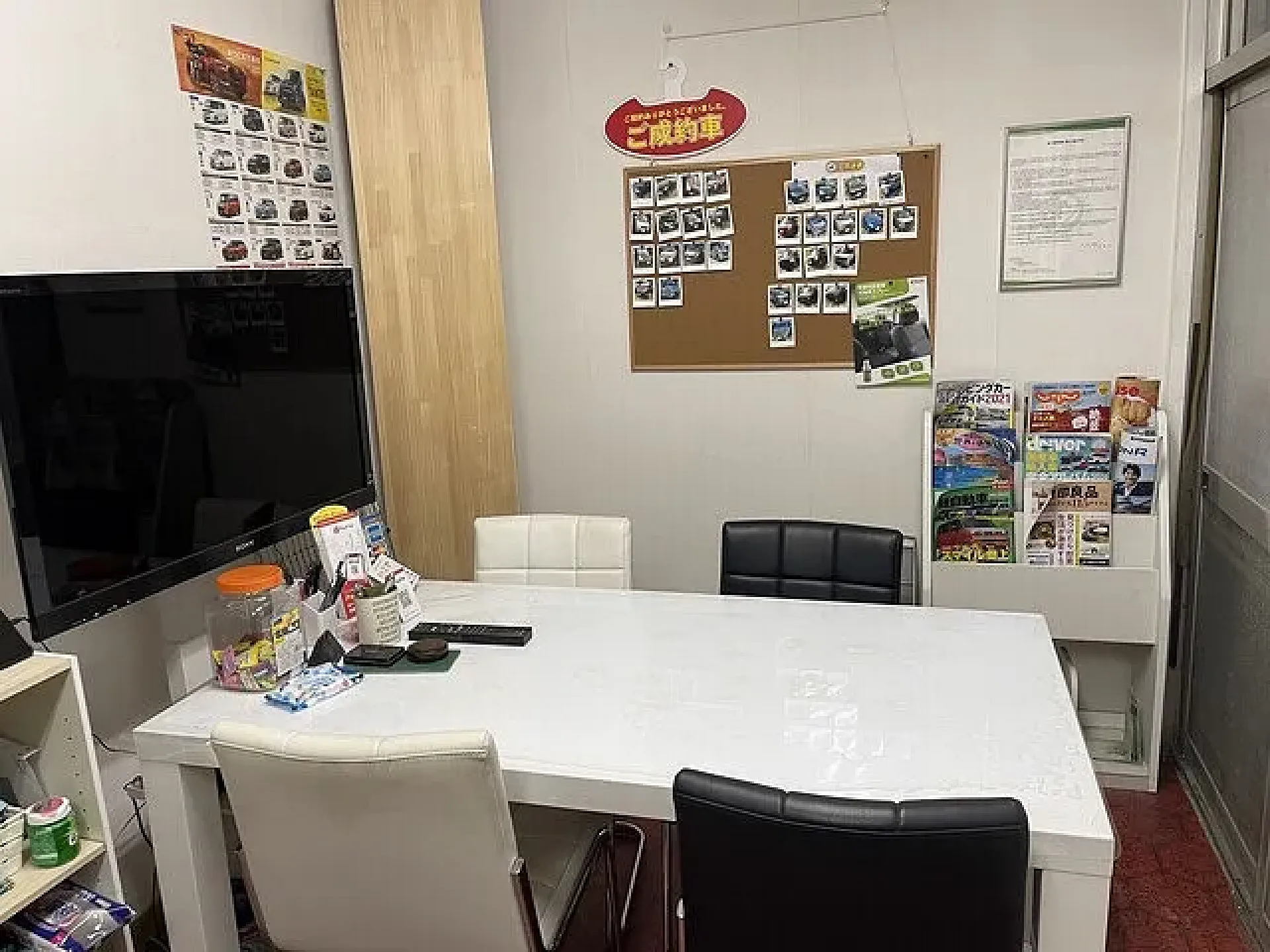当店は国に認められた認証工場。だから車検・修理に必要な最新設備が揃っているんです。また時間を気にせずご相談いただける商談スペースや、車検・修理中もゆっくりとお過ごしいただける待合スペースを完備しております。